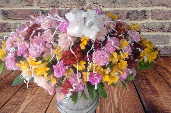 Cubre Caja Fúnebre Margaritas, Astromelias y Claveles