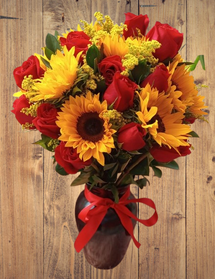Este Florero Rosas y Girasoles es el regalo perfecto para expresar amor y amistad. Con 24 rosas rojas y girasoles, este hermoso arreglo es una explosión de color y alegría. Con el delicado cuidado de nuestras flores, este florero asegura frescura y belleza duradera. ¡Haz alguien feliz con este regalo!