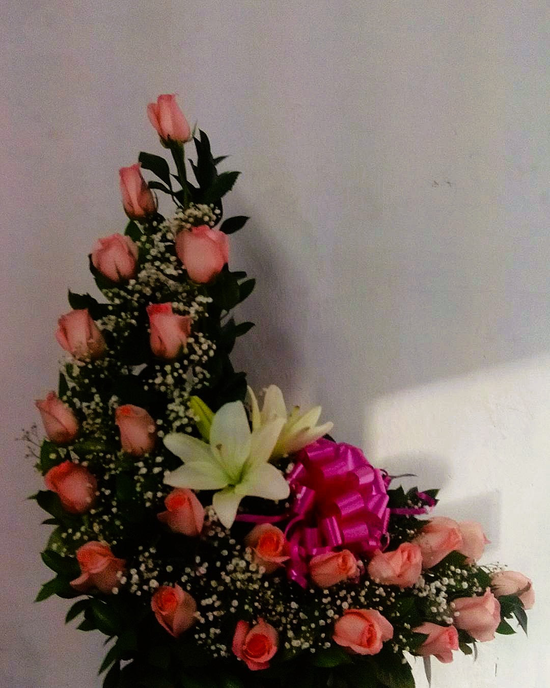 Este hermoso arreglo en forma de media luna es perfecto para mostrar tu cariño y amor a esa persona especial. Con 20 rosas y 2 lirios, este regalo es una combinación perfecta de romance y elegancia. ¡Sorprende a tu ser querido con esta hermosa muestra de afecto!